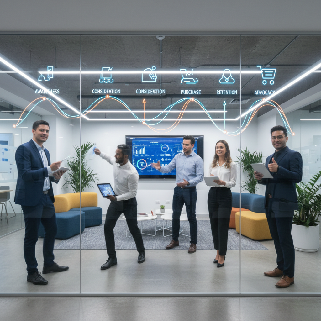 - Customer Journey (ścieżka klienta): Droga, jaką klient pokonuje od pierwszego kontaktu z marką aż po lojalność – każda interakcja, decyzja, emocja. Na przykład, w e-commerce to nie tylko zakup, ale też powiadomienia o dostawie, proces zwrotu czy obsługa reklamacji.